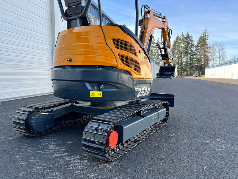 The 2520 packs a powerful 20hp EPA certified Kubota D1105 Diesel engine and a choice between open and enclosed cab. This excavator weighs in at 2.5 tons and is designed for more heavy duty tasks when compared to its lighter siblings. One of the first things you will notice when compared to the 1014 or 1820 is the significantly larger cab area. The 2520 series comes standard with a hydraulic thumb, AUX port, and side swing boom. A larger hydraulic pump allows this unit to be fitted with high demand attachments such as flail mowers. Available separately. Upgrade to optional attachments, steel tracks, enclosed cabin, or custom colors.